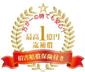 万一、作業中に住宅や家財を傷つけてしまった場合には最大で1億円まで保証が可能です。 -